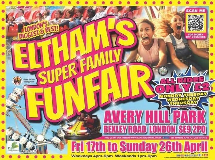 ELTHAM’S SUPER FAMILY FUNFAIRBRAND NEW FOR 2026 — ELTHAM’S SUPER FAMILY FUNFAIR 🔥🎡 We’re bringing the BIGGEST & BEST to South East London 👀✨ 📍 Avery Hill Park, Bexley Road, SE9 2P...